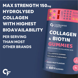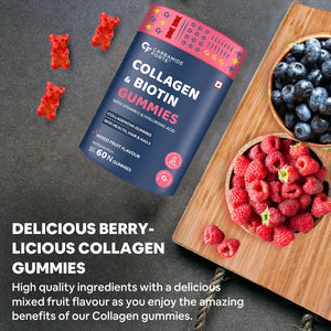 Carbamide Forte Collagen & Biotin Gummies| Collagen Supplements for Women & Men for Skin & Hair - Mixed Fruit Flavour - 60 Gummies