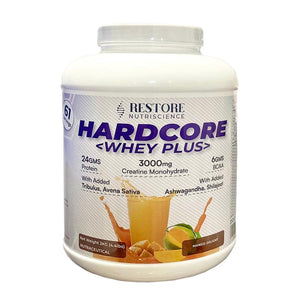 RESTORE NUTRISCIENCE’S HARDCORE WHEY PLUS is one true choice for athletes, scientifically formulated to add size and recommended for individuals who want to breakthrough their Strength training barrier! The superior formula of HARDCORE WHEY PLUS enhanced with proven Anabolic ingredients and Herbal test boosters for rapid muscle gains and strength