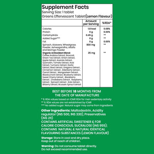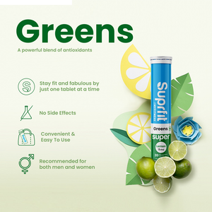 Our Greens tablet is a superb mix of Vitamin B12, Folic Acid, Zinc, 100% of Vitamin D, iron, and Biotin.